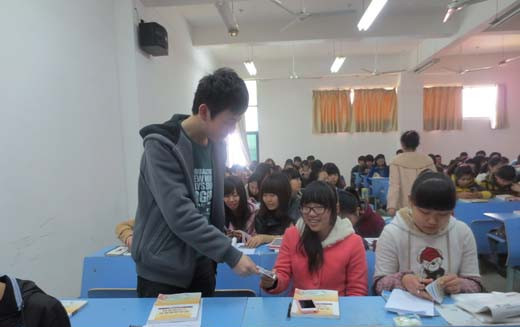在传统节日三八妇女节前夕,文学院“青鸟”志愿者服务队领导学院11、12年级全体男生为学院女生组织了一场别出心裁的特别活动,陪伴文学院女生度过了一次难忘的“3·7女生节”。活动以“请叫我女王大人”为主题,内容包括心意小卡片的设计与赠送、节日愿望的满足等。