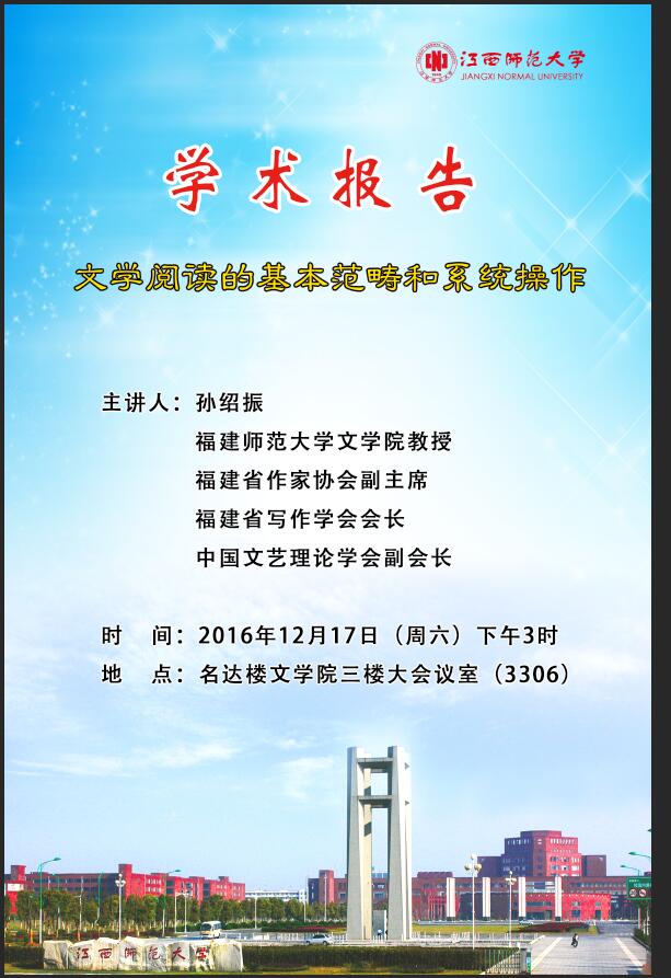学术报告:《文学阅读的基本范畴和系统操作》(主讲人:孙绍振)