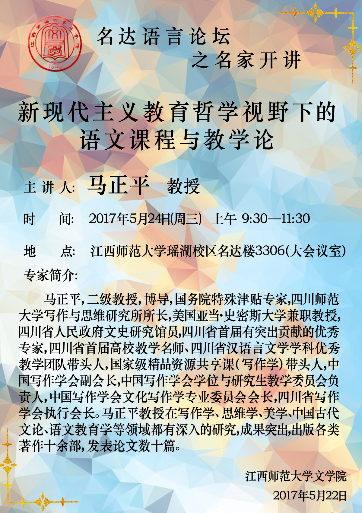 学术报告:《新现代主义教育哲学视野下的语文课程与教学论》(主讲人:马正平)