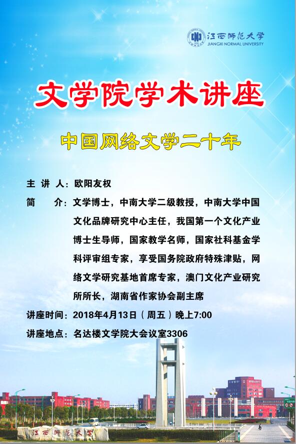 学术报告:《中国网络文学二十年》(主讲人:欧阳友权)