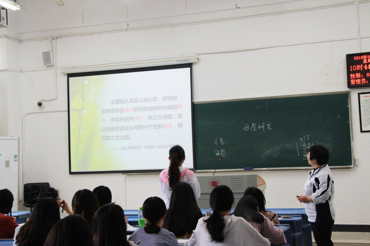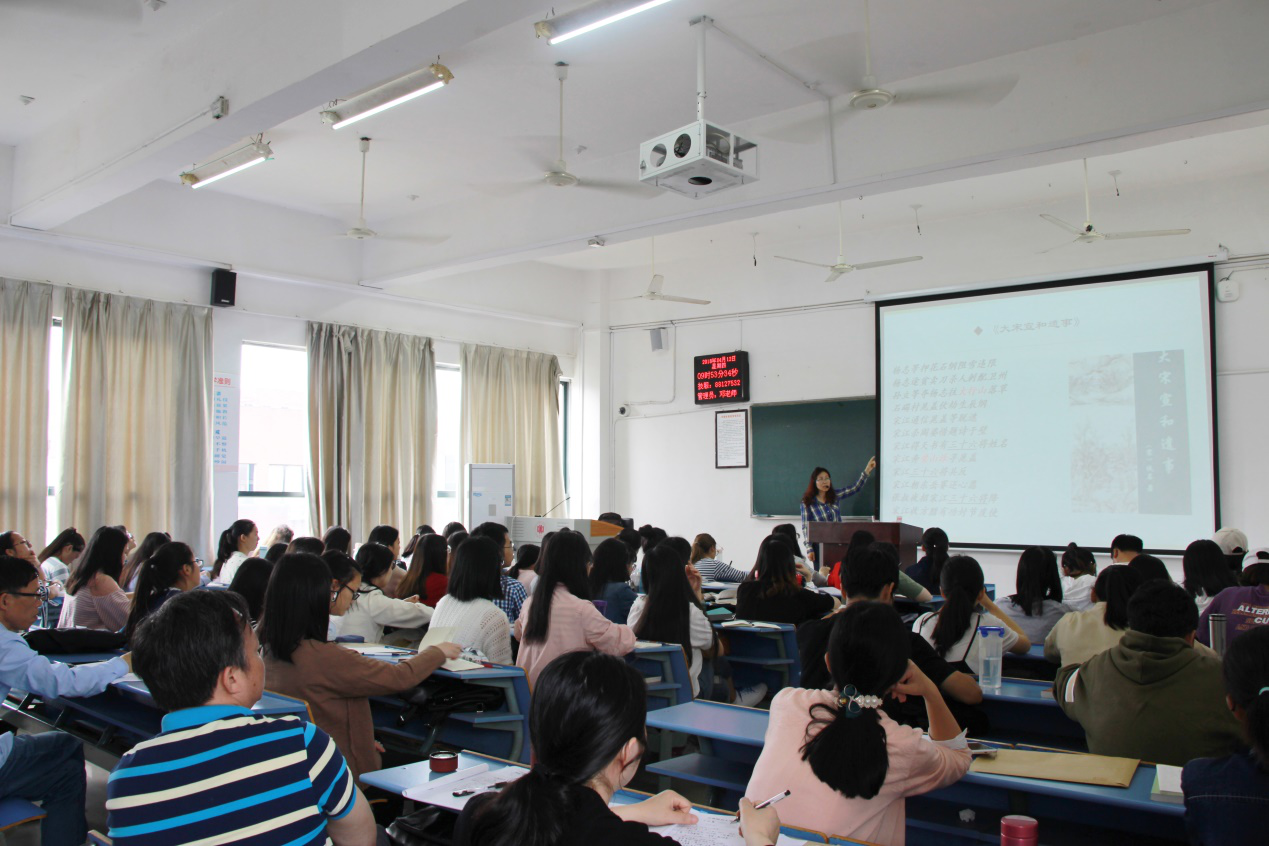 课堂教学“十佳百优”教师候选人文迎霞、陈志华先后主讲。文迎霞讲授内容为《水浒传的思想意蕴》,陈志华讲授内容为《母题研究》,两位教师语言幽默风趣,与学生积极互动,教学效果和课堂气氛良好,充分展现了深厚的专业知识基础与丰富的授课经验。比赛结束后,现场进行了课堂教学评分统计,并结合评委专家对教案、课件等的评分结果,统计出了参赛教师的总得分。