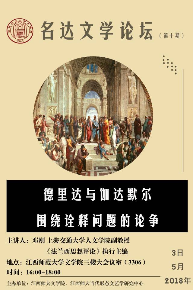 学术报告:《德里达与伽达默尔围绕诠释问题的论争》(主讲人:邓刚)