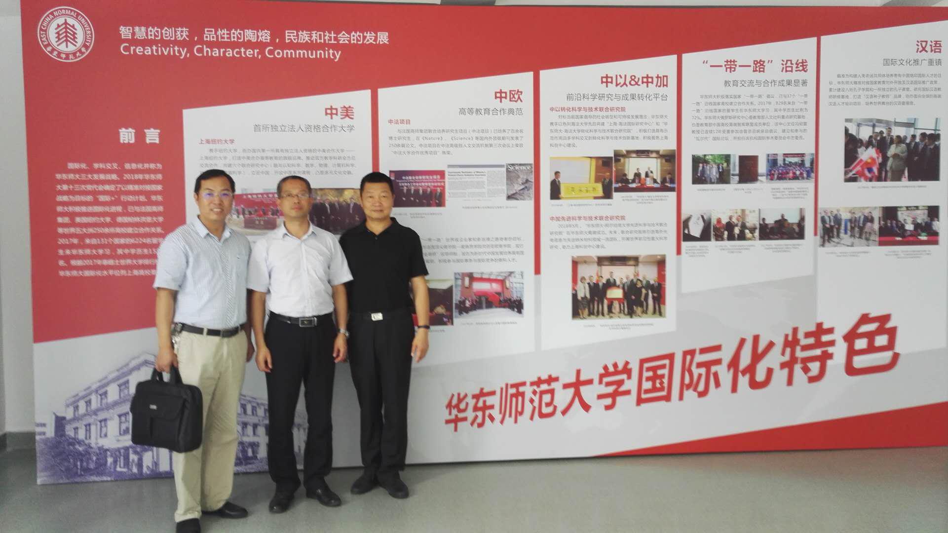 6月10日至11日,文学院院长詹艾斌教授与刘楚群、饶思中两位老师赴华东师范大学国际汉语文化学院交流学习。华东师范大学国际汉语文化学院副院长刘承峰、办公室主任李艳飒以及张玲平老师接待了我院老师。 刘承峰副院长对我院一行表示热烈欢迎,并详细介绍了该院汉语国际教育人才培养的思路、方法、措施,以及教育国际化的具体举措。詹艾斌院长介绍了我院在汉语国际教育人才培养方面的一些具体举措,同时也阐明了我们在发展过程中的一些困惑。 张玲平老师带我院交流组一行参观了该院国际汉语教师研修基地。