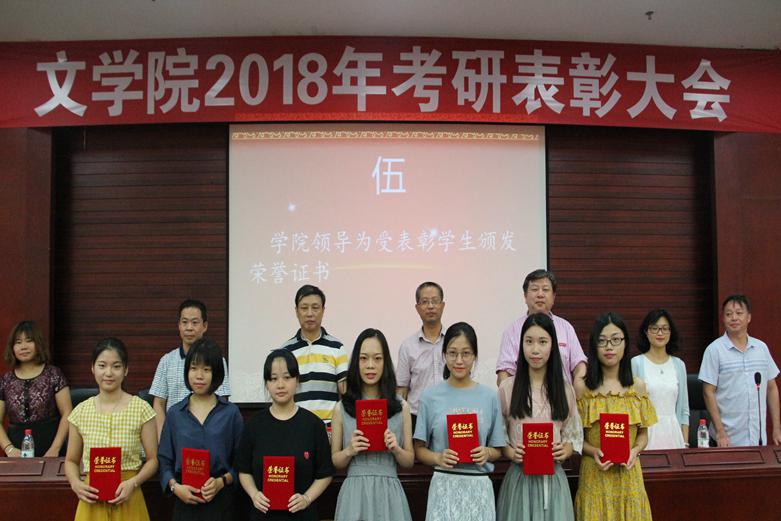 为加强学院学风建设,表彰优秀考研学子,6月19日下午,文学院在图文信息中心6201报告厅隆重举行2018年考研表彰暨动员大会。文学院领导班子成员出席会议,学院教师代表、辅导员以及各年级学生代表180余人参加会议。会议由文学院院务委员江腊生教授主持。