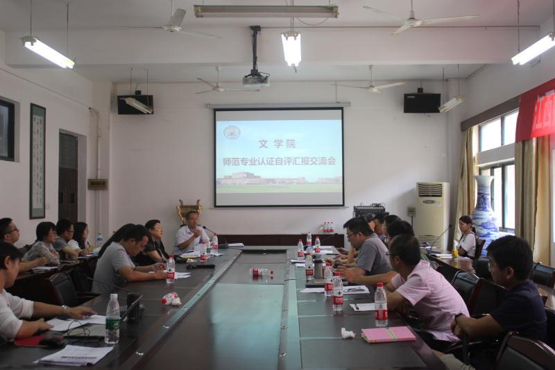 8月27日上午,文学院在名达楼3306会议室召开汉语言文学(师范)专业认证自评汇报交流会,学院领导班子成员及汉语言文学(师范)专业认证工作小组成员到场参加,会议由詹艾斌院长主持。