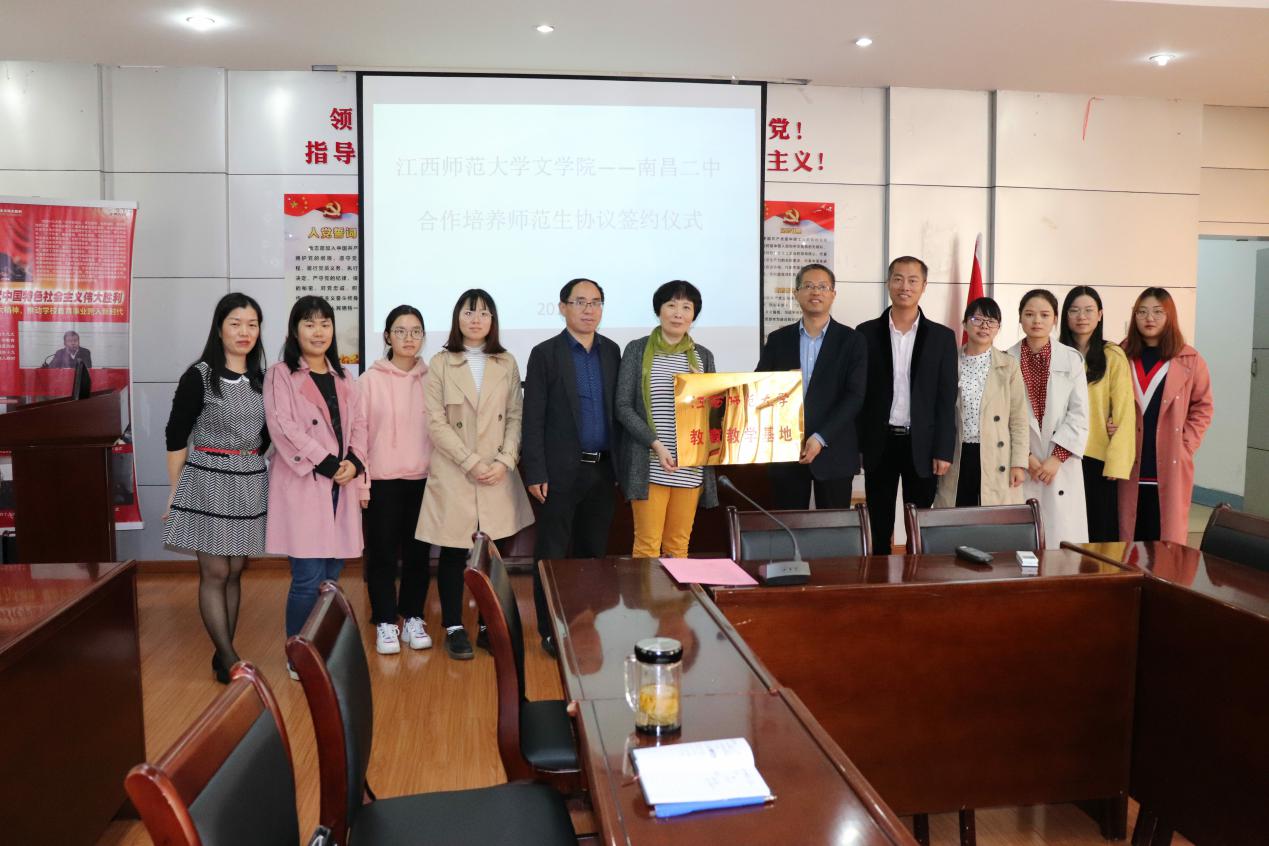此次走访巡查,詹院长一行与各实习单位签订了“江西师范大学文学院师范生院校合作培养协议书”,并向实习学校授牌“江西师范大学教育实践基地”。双方承诺今后将在协同培养卓越师范专业人才、促进中等学校语文学科发展和深化基础语文教育教学改革等方面展开进一步合作。