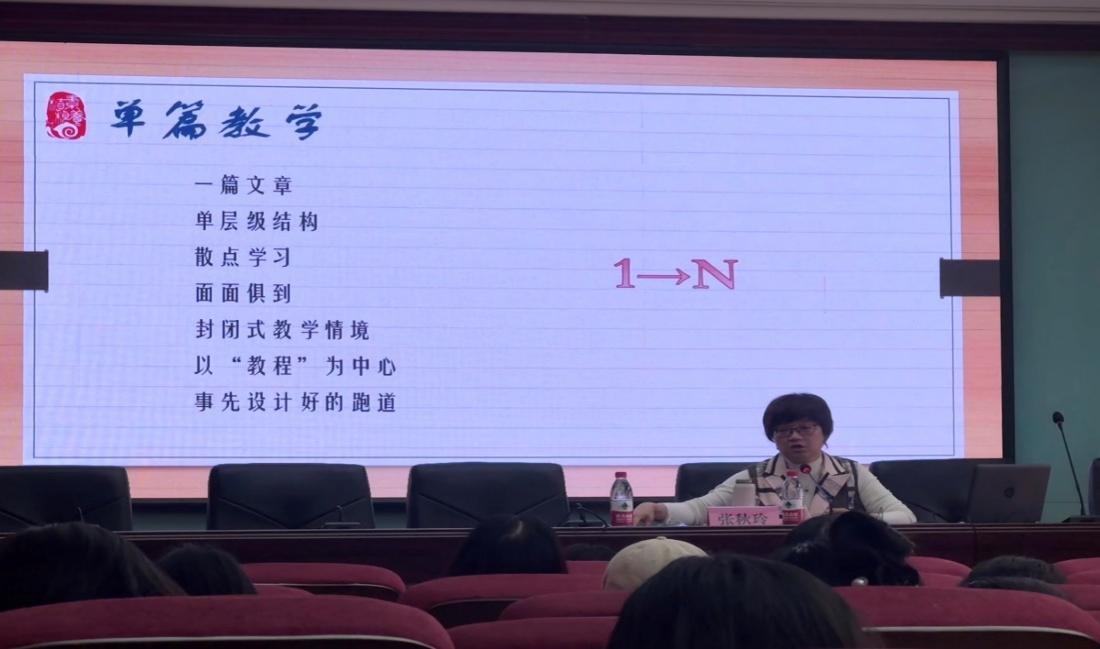 张秋玲教授介绍了“语文课程形态”定义反复修订的过程及重要意义,从理论假设、学理依据、三者关系、结构特征等四个部分进行阐释,并以现行部编版初中语文教材八年级上册第四单元为例,针对单篇、单元与群文的不同特点和教学方式进行深刻剖析。张秋玲教授的讲授重点突出,内容详细,条理清晰,细致入微,见解独到,极大地激发了大家的求知欲。