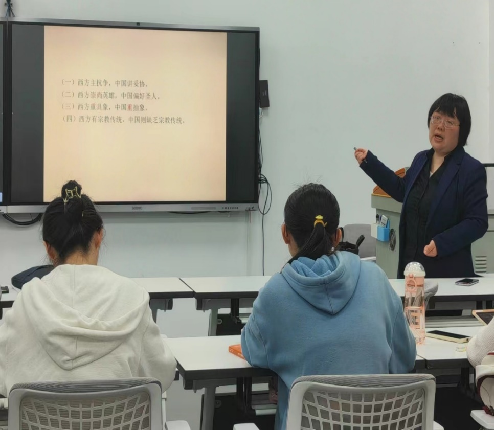 4月10日下午,《比较文学》课程负责人陈志华老师于惟义楼3408教室开展示范教学。陈老师以“中国是否有悲剧”这一问题为引,带领同学们分析中西戏剧文体差异形成的原因,感知文学在不同文明背景下产生的魅力。