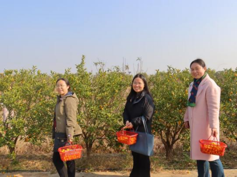 在金桔采摘区,老师们三五成群,手持小篮,穿梭于果树之间。一颗颗圆润饱满的金桔像小灯笼般缀满枝头,轻轻一摘,便落入掌心,香气扑鼻。大家边采边聊,不时传来阵阵笑声。有的老师忍不住现场品尝,酸酸甜甜的滋味瞬间激活味蕾,更添一份田园乐趣。“自己摘的就是香”一位老师举起满满一篮金桔,笑容灿烂地说。
