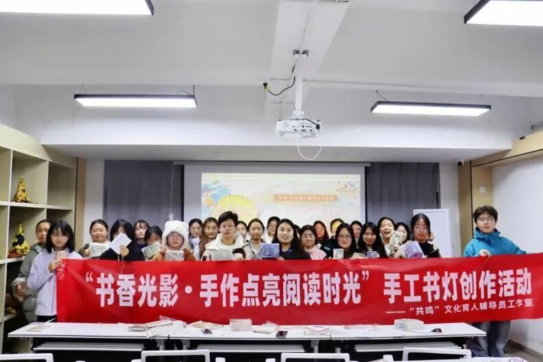 12月4日,“共鸣”文化育人辅导员工作室在“一站式”学生社区红色讲堂举办了“书香光影·手作点亮阅读时光”手工书灯创作活动。