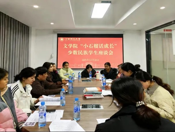 为深入贯彻铸牢中华民族共同体意识,切实服务少数民族学长成才,12月22日下午,文学院在一站式学生社区组织召开“小石榴话成长”少数民族学生座谈会。学院党委副书记付婧、辅导员杨凯欣与各民族学生代表参会,面对面交流思想、倾听诉求、共话发展。会议由2025级辅导员帕日则·斯马义主持。